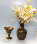 Brass vase with flower 17" h.; Brass vase 11" h. Brass vase with flower 17" h.; Brass vase 11" h.