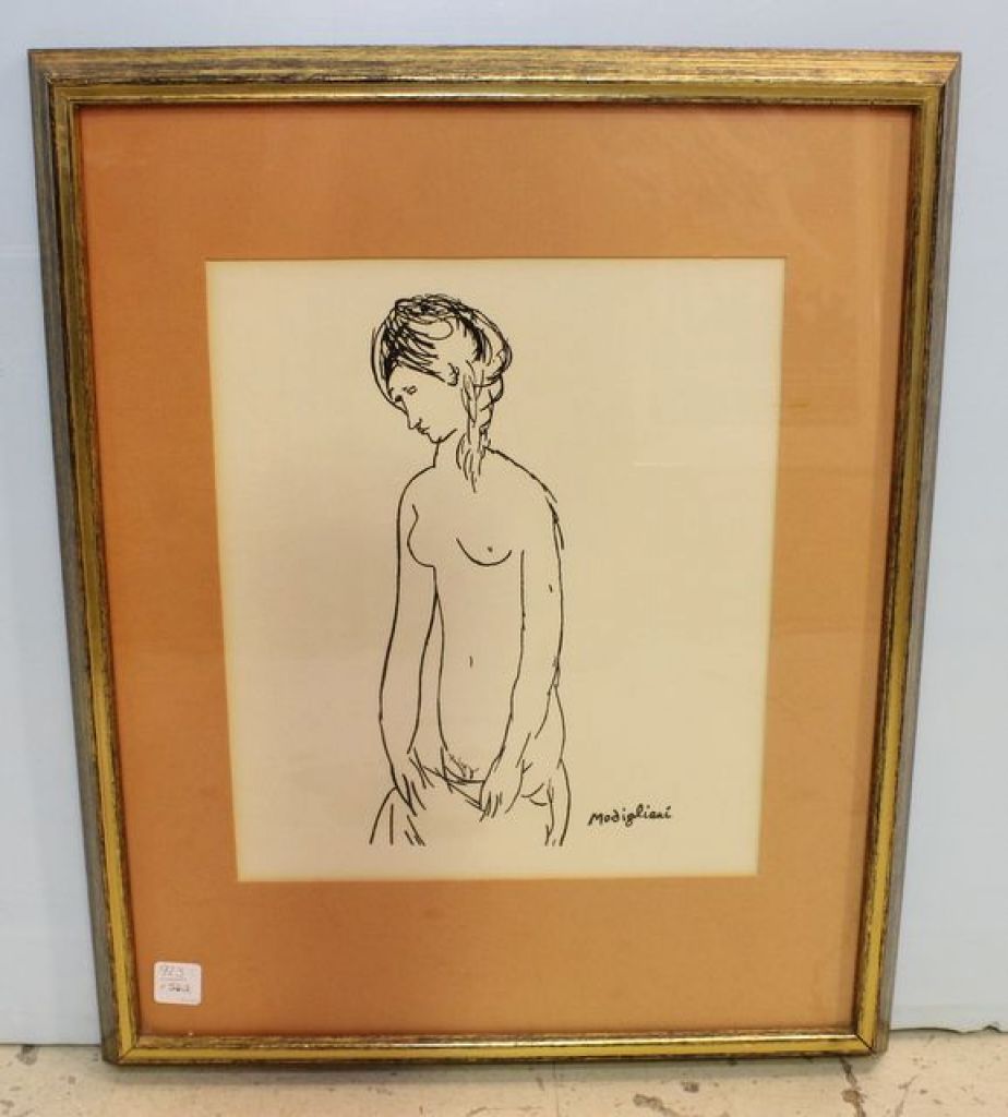 Signed Modigliani; 17 1/2" w., 21 1/2" h. Signed Modigliani; 17 1/2" w., 21 1/2" h.