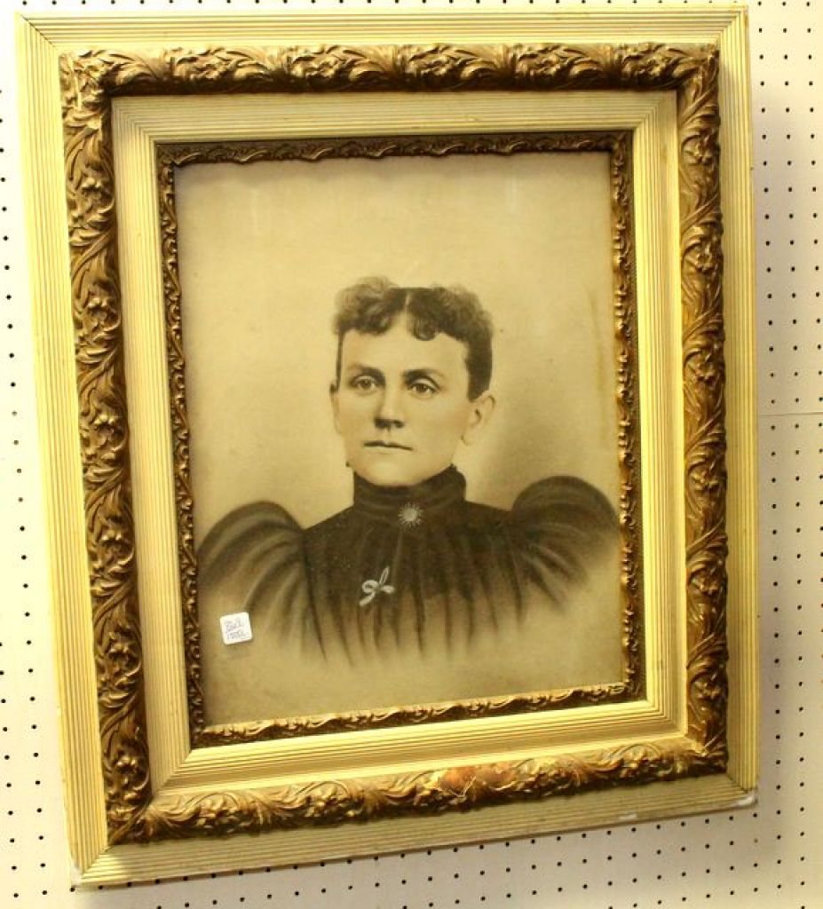 Has picture of lady; 26" w., 30" h. Has picture of lady; 26" w., 30" h.