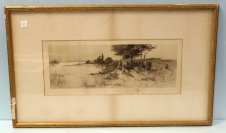 In gold frame, has damage.; 33" w., 20" h. In gold frame, has damage.; 33" w., 20" h.
