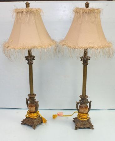 With fringed shades; 32" h. With fringed shades; 32" h.