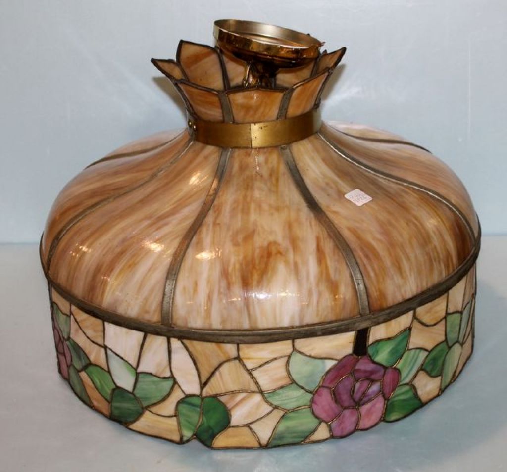 Possibly Chicago glass, hairline crack in one panel.; 22" dia. Possibly Chicago glass, hairline crack in one panel.; 22" dia.