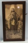 In oak frame; 12 1/2" w., 22 1/2" h. In oak frame; 12 1/2" w., 22 1/2" h.