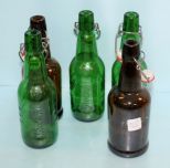 1031 Three Green Grolsch Bottles & Two Brown Bottles