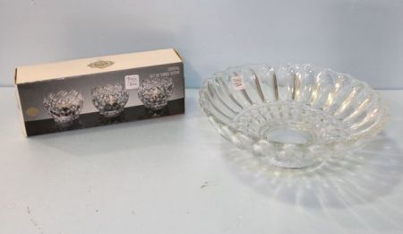 1312 Set of Three Crystal Votives & Crystal Bowl
