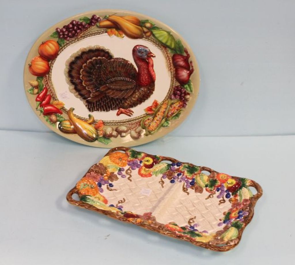 1204 Divided Ceramic Fruit Tray & Plastic Turkey Platter