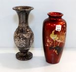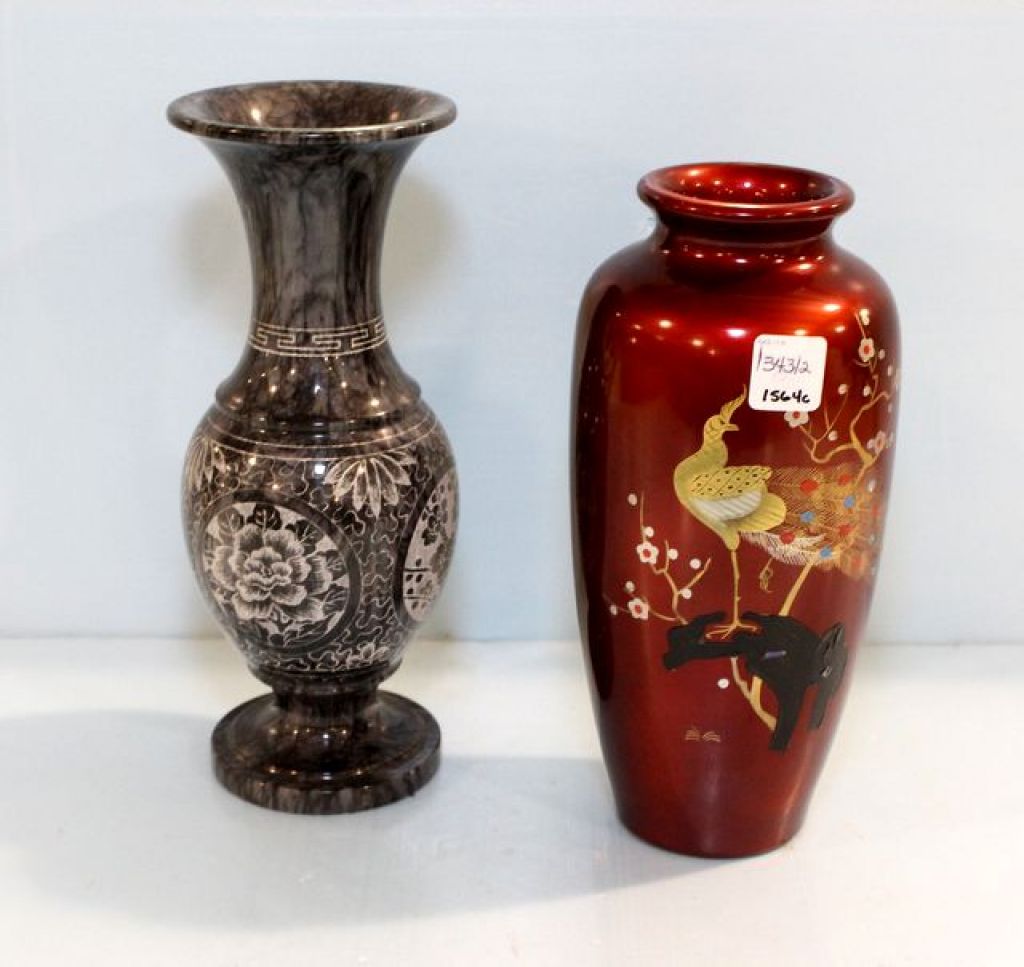 1343 Red Lacquer Chinese Vase & Marble Vase