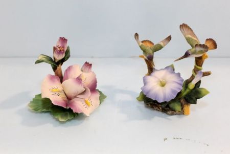 1346 Heritage Home Porcelain Figurine of Hummingbirds & Porcelain Capidomonte Flowers