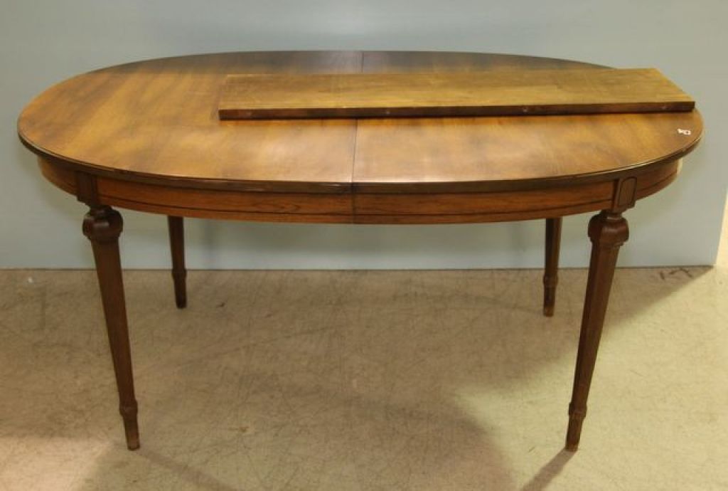 With one 12" leaf; 62" w., 43" d., 29 1/2" h. With one 12" leaf; 62" w., 43" d., 29 1/2" h.