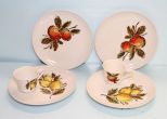 Consists of four snack plates and two mugs Consists of four snack plates and two mugs