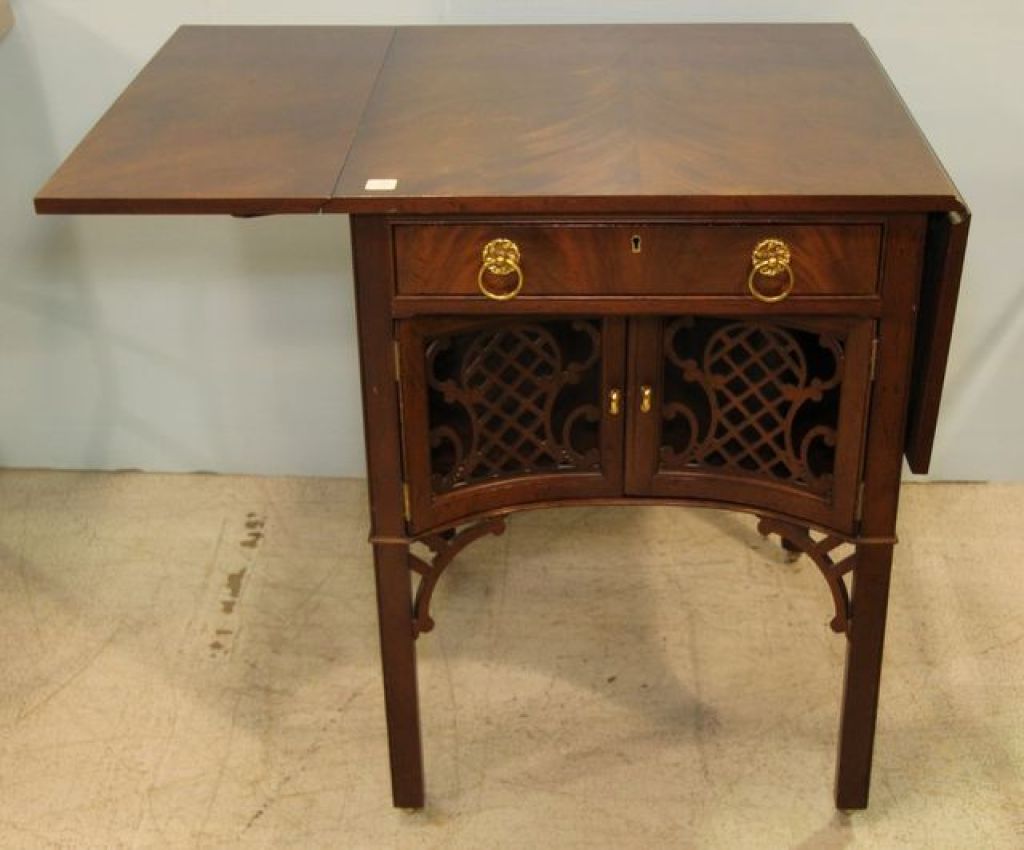 746 Century Furniture Mahogany Elaborately Carved Drop Leaf Side Table