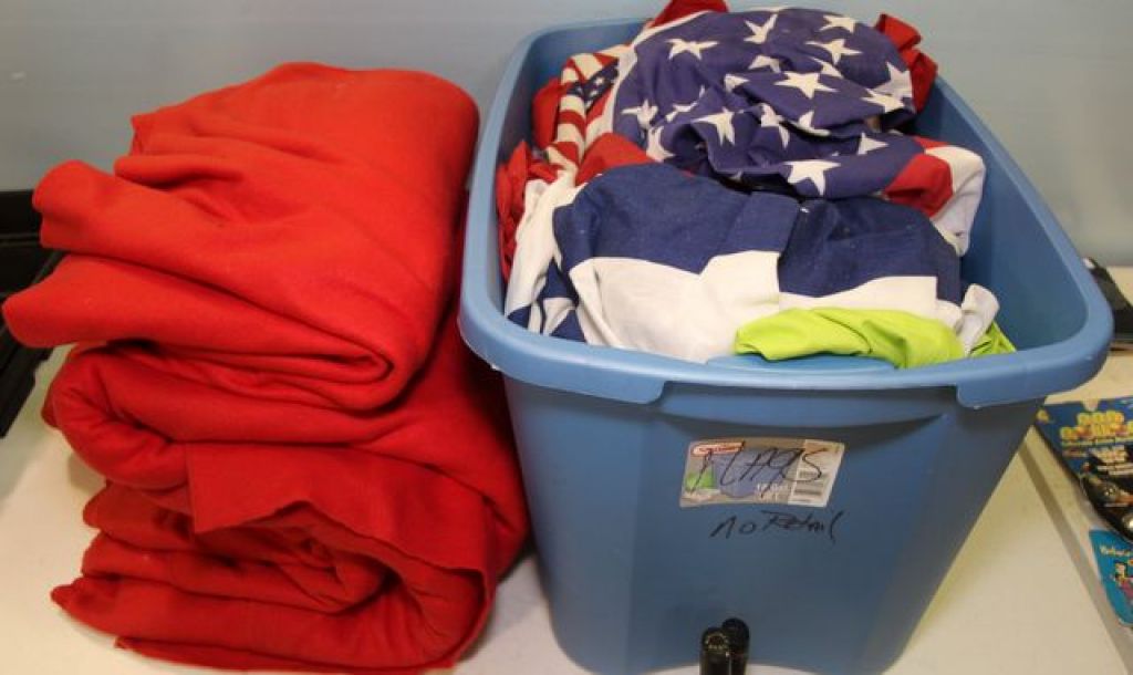 Including flag, fabric pieces & large yardage of red felt Including flag, fabric pieces & large yardage of red felt