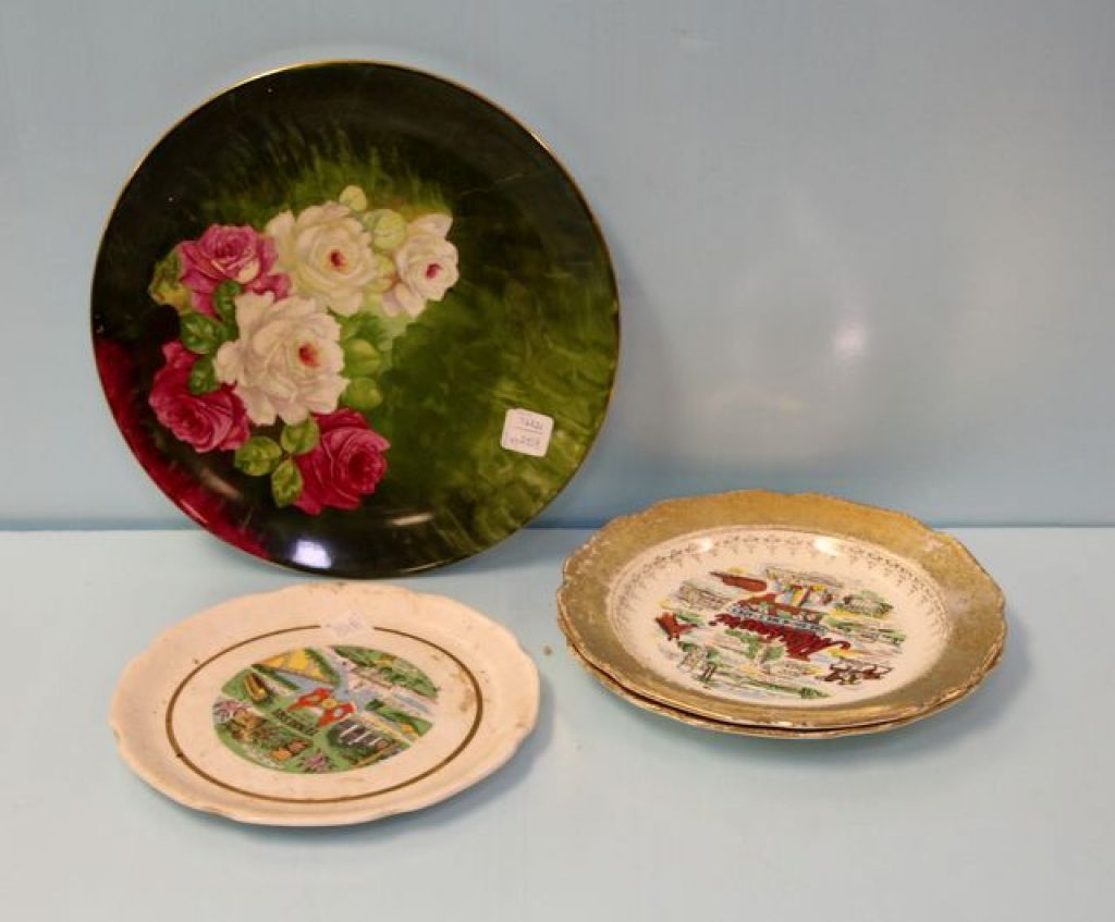 825 Three State Souvenir Plates & Hand Painted Flower Plate