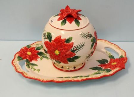 829 Poinsettia Tray & Cookie Jar