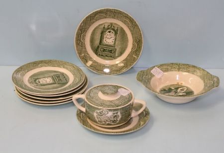 832 Nine Pieces of Green and White Old Curiosity Shop China