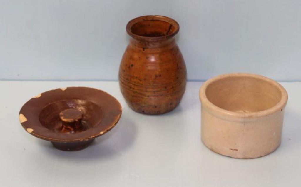 Two Crock Vases & Lid