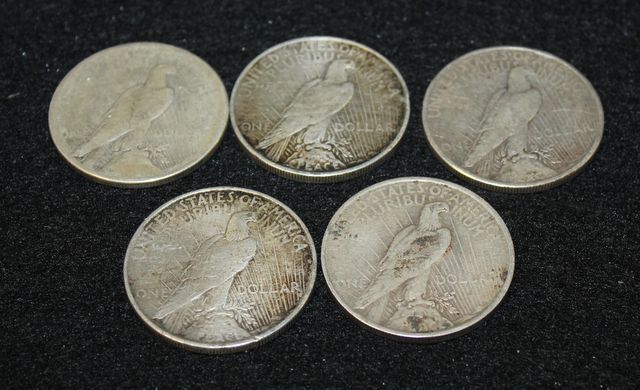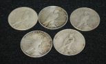 Five Liberty Silver Dollars. 1922, (3) 1923, 1925 Five Liberty Silver Dollars. 1922, (3) 1923, 1925