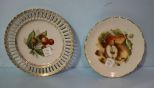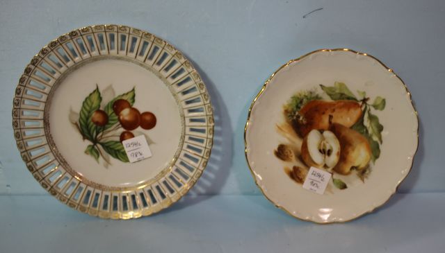 One hand painted reticulated Occupied Japan plate 8 1/4"dia.; one German hand painted plate 7 1/2"dia. One hand painted reticulated Occupied Japan plate 8 1/4"dia.; one German hand painted plate 7 1/2"dia.