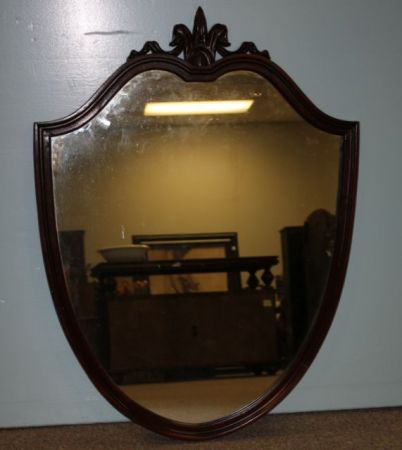 Mahogany Shield Mirror; 36"h., 26"w. Mahogany Shield Mirror; 36"h., 26"w.