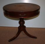 Mahogany Leather Top Drum Table; 28"dia., 27"h. Mahogany Leather Top Drum Table; 28"dia., 27"h.