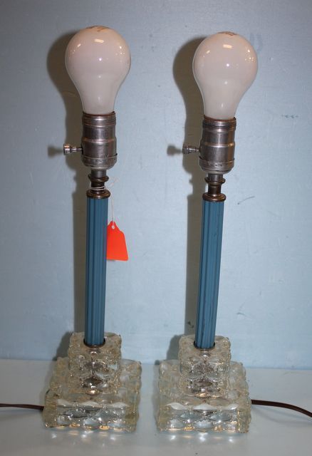 Pair Vintage Glass Boudoir Lamps; 17"h. Pair Vintage Glass Boudoir Lamps; 17"h.