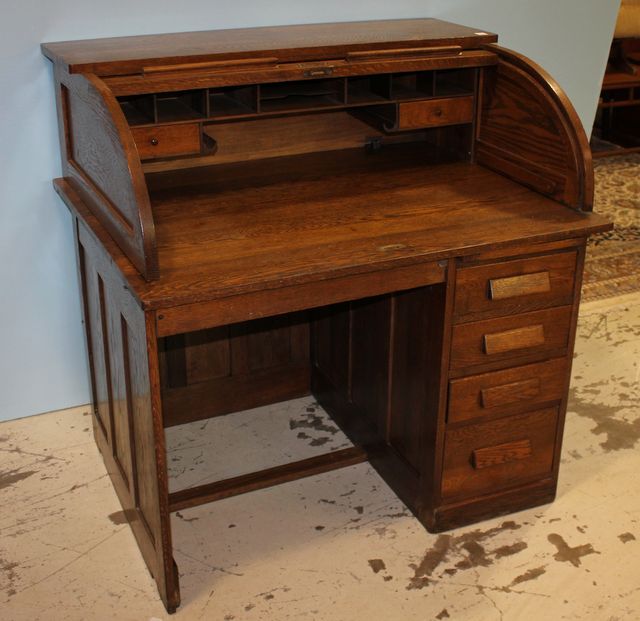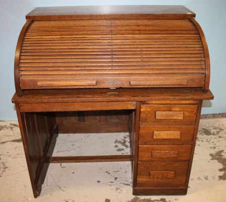Oak Roll Top Desk; 42"w., 32"d., 42"h. Oak Roll Top Desk; 42"w., 32"d., 42"h.