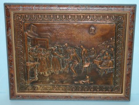 Village Holiday from Ukraine made on copper; 11 1/2"w., 9"h. Village Holiday from Ukraine made on copper; 11 1/2"w., 9"h.