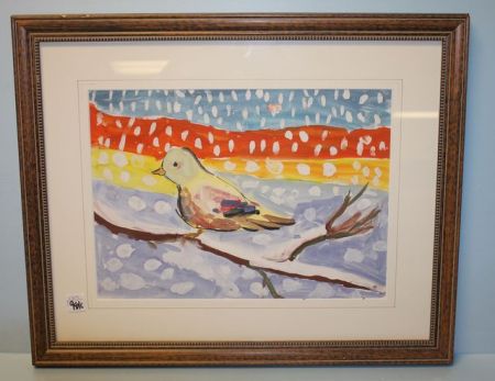 Watercolor of Bird; 23 1/2"w., 19"h. Watercolor of Bird; 23 1/2"w., 19"h.