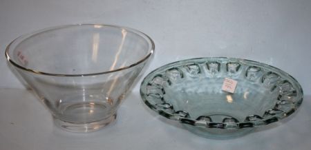 Two Large Glass Bowls; 11 1/2", 10 1/2" l. Two Large Glass Bowls; 11 1/2", 10 1/2" l.