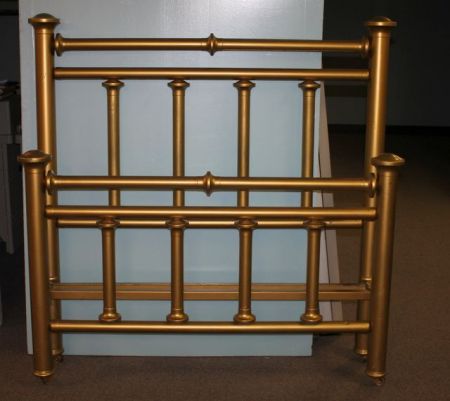 Iron Bed Standard Size, painted gold, with rails; 54"h. Iron Bed Standard Size, painted gold, with rails; 54"h.