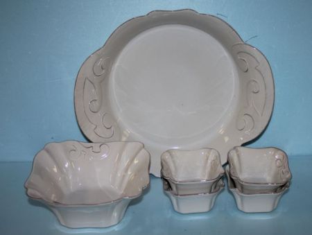 1410 Six pc. of Casafina Casa Stone "Arabesque" Pasta Serving Bowl 13"dia., Soup/Cereal bowl 7"dia., and 4 Ramekins 3 1/2"dia.