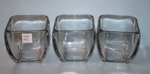 Three Square Glass Candleholders; 4 1/4"square Three Square Glass Candleholders; 4 1/4"square