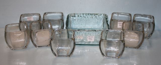 Nine Glass Candleholders; 3 1/4"sq., one square glass candleholder 6 1/2" sq. Nine Glass Candleholders; 3 1/4"sq., one square glass candleholder 6 1/2" sq.