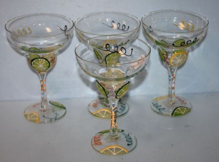 Four Martini Glasses, paint decorated; 6 7/8"h. Four Martini Glasses, paint decorated; 6 7/8"h.