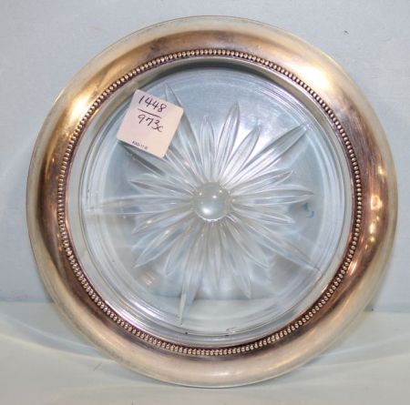 Large Sterling Rim Glass Coaster marked Frank Whiting '06; 6 1/2"dia. Large Sterling Rim Glass Coaster marked Frank Whiting '06; 6 1/2"dia.