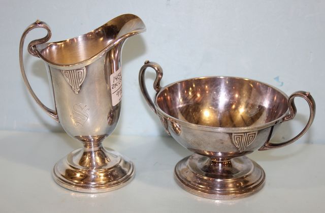 ENS Sheffield Creamer and Sugar, early 20th Century, monogram S (pitcher 5"h) ENS Sheffield Creamer and Sugar, early 20th Century, monogram S (pitcher 5"h)