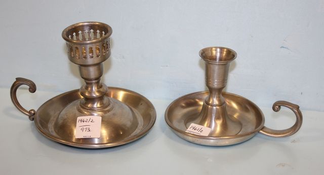 Empire Pewter Candlestick w/handle 5"h.; pewter candlestick w/handle 4 1/4"h. Empire Pewter Candlestick w/handle 5"h.; pewter candlestick w/handle 4 1/4"h.