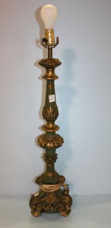 Green and Gold Table Lamp, 29" h. Green and Gold Table Lamp, 29" h.