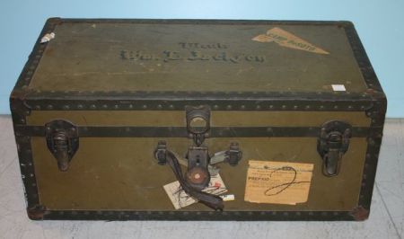 Army Metal Trunk; 31" w., 16" d., 13" h. Army Metal Trunk; 31" w., 16" d., 13" h.