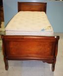 Twin Size Mahogany Sleigh Bed with wood rails and mattress; 46" h. Twin Size Mahogany Sleigh Bed with wood rails and mattress; 46" h.