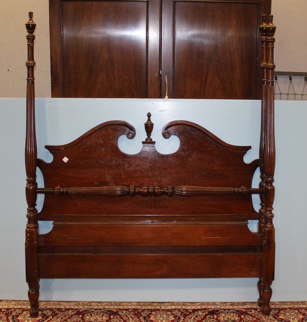 Mahogany Full Size Four Poster Bed with Rails; 68" h. Mahogany Full Size Four Poster Bed with Rails; 68" h.