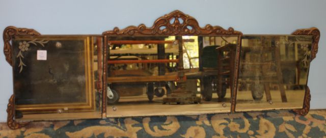 Three Section Deco Mirror; 39" w., 13 1/2" h. Three Section Deco Mirror; 39" w., 13 1/2" h.