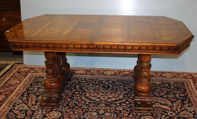Oak Dining Table with Skirted Leaves and Table Pads; 30" h., 44" w., 6' l., each leaf 18" w. Oak Dining Table with Skirted Leaves and Table Pads; 30" h., 44" w., 6' l., each leaf 18" w.