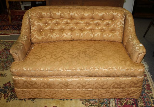 Gold Fabric Sofa; 28"h., 51"w. Gold Fabric Sofa; 28"h., 51"w.