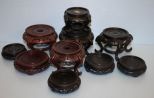Group of Ten Wood Easels in Oriental Design; 2 1/2" - 3" dia. Group of Ten Wood Easels in Oriental Design; 2 1/2" - 3" dia.
