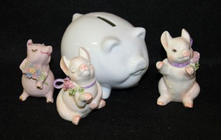 Piggy Bank (4" l.) and Three Little Pigs (2 1/2" h.) Piggy Bank (4" l.) and Three Little Pigs (2 1/2" h.)