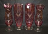 2004 Four Cranberry Flash and Etched Pieces