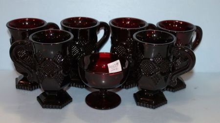 Seven Red Glass Mugs (5" h.) and One Sherbert Seven Red Glass Mugs (5" h.) and One Sherbert
