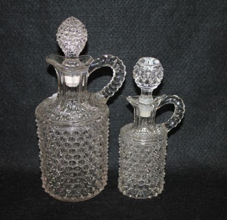 Two Press Glass Cruets; 7 1/2", 10" h. Two Press Glass Cruets; 7 1/2", 10" h.