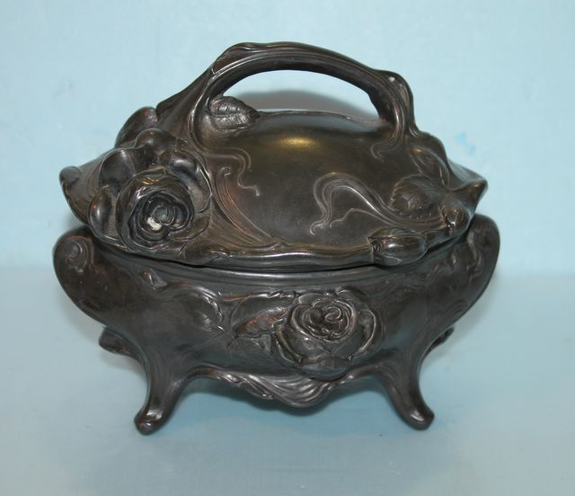 Silverplate Art Nouveau Box; 5 1/2" oval Silverplate Art Nouveau Box; 5 1/2" oval